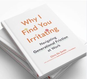 Chris De Santis is a world-leading organizational behavior practitioner, speaker, podcaster, and author, with over thirty-five years of experience working with clients in professional services firms both domestically and internationally. Over the past fifteen years, he has been invited to speak on generational issues in the workplace at hundreds of the leading U.S. law and accounting firms, as well as many of the major insurance and pharma companies. His new book is Why I Find You Irritating: Navigating Generational Friction at Work (Amplify Publishing, May 3, 2022) is a top-selling book on the topic of generational friction and communication.