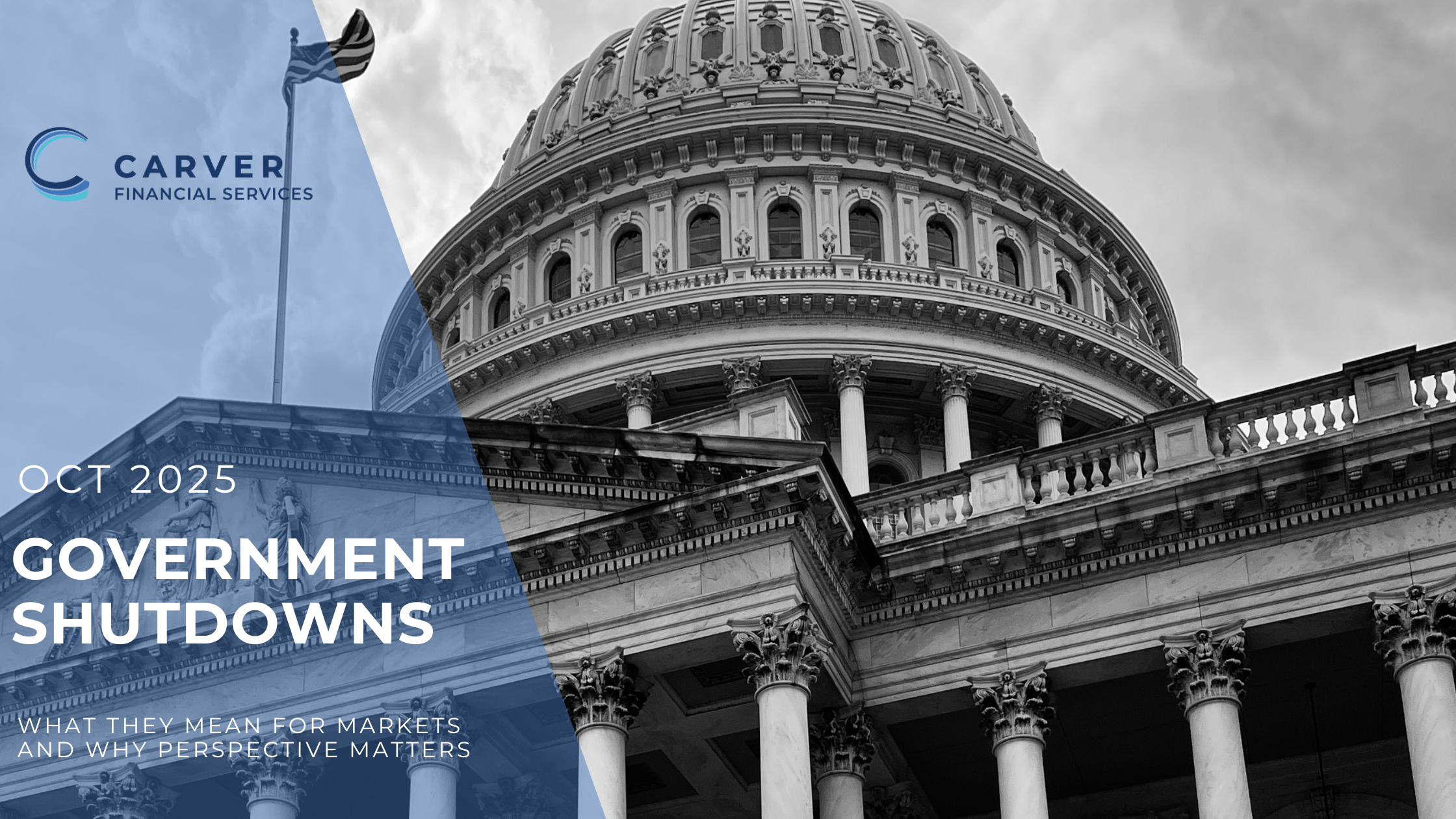 As the current U.S. government shutdown approaches the three-week mark, it’s natural for headlines (and investor nerves) to amplify. At Carver Financial Services, we believe that staying grounded in facts and maintaining a long-term perspective is the best way forward. Below, we provide historical context, evaluate what this shutdown may — and may not — mean for financial markets over the next 6-12 months, and highlight how we’ve supported clients through past events.